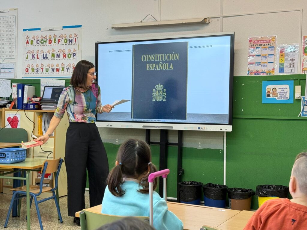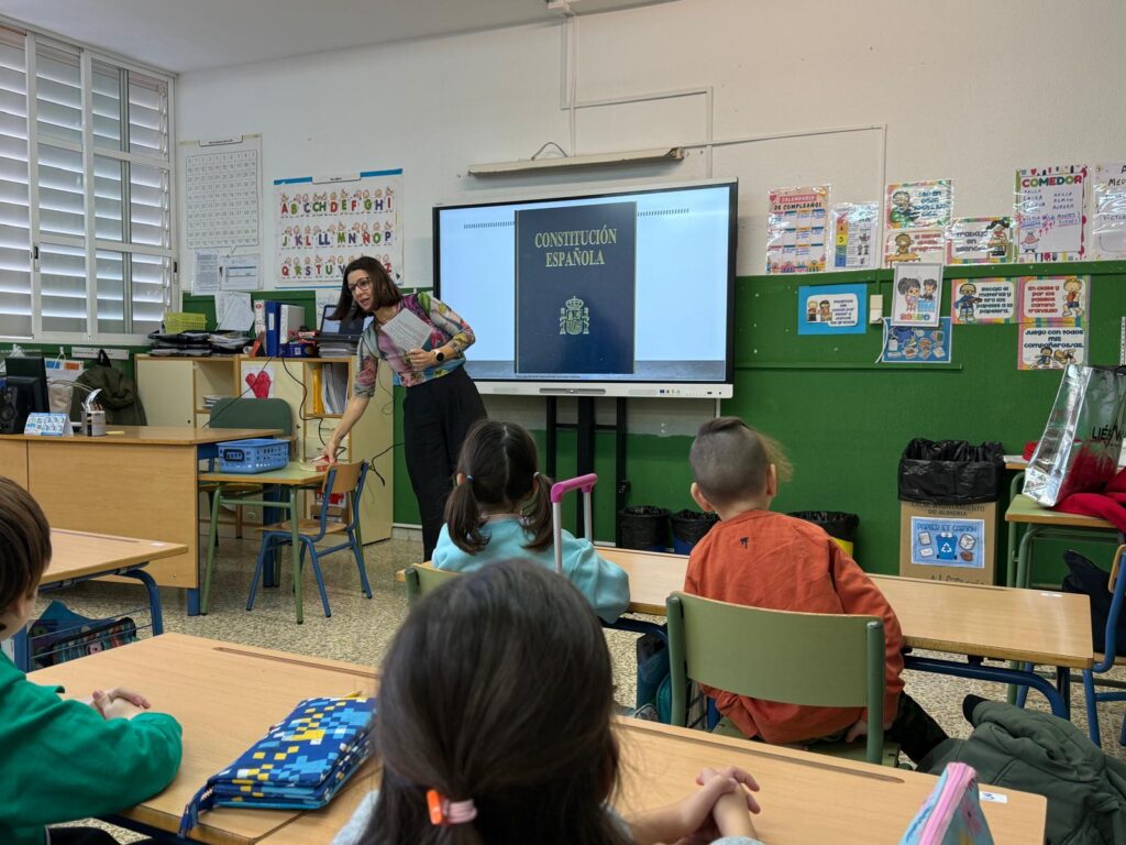 Con motivo de la próxima celebración del Día de la Constitución, nuestro alumnado del Primer Ciclo (1º y 2º de Primaria) ha disfrutado de una mañana de aprendizaje muy especial. Hemos tenido la gran suerte de contar con Beatriz, mamá del colegio y trabajadora de los Juzgados de Almería, quien ha cambiado hoy los tribunales por las aulas para acercarnos «la ley de leyes».